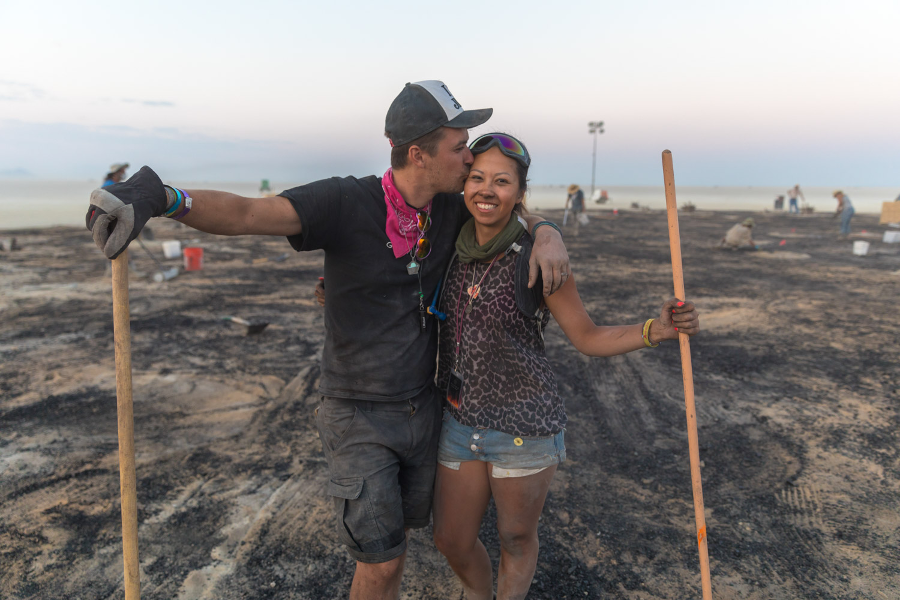 Temple builder Arthur Mamou-Mani and his bride Sandy Kwan leave no trace from the Temple burn.